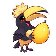 Download and print this funny digital art of a delighted hornbill with fruit for instant humorous joy. A perfect funny gift.